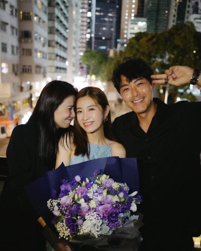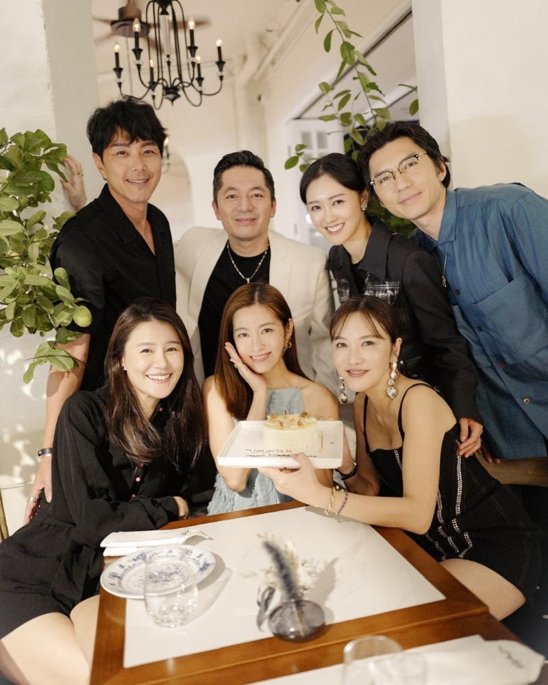 ▲黄翠如与老公萧正楠ღ★ღღ、袁伟豪与老婆张宝儿ღ★ღღ、胡曦文(前名胡敏珊)及男友罗御轩三对为陈自瑶庆祝生日凯发20周年ღ★ღღ。